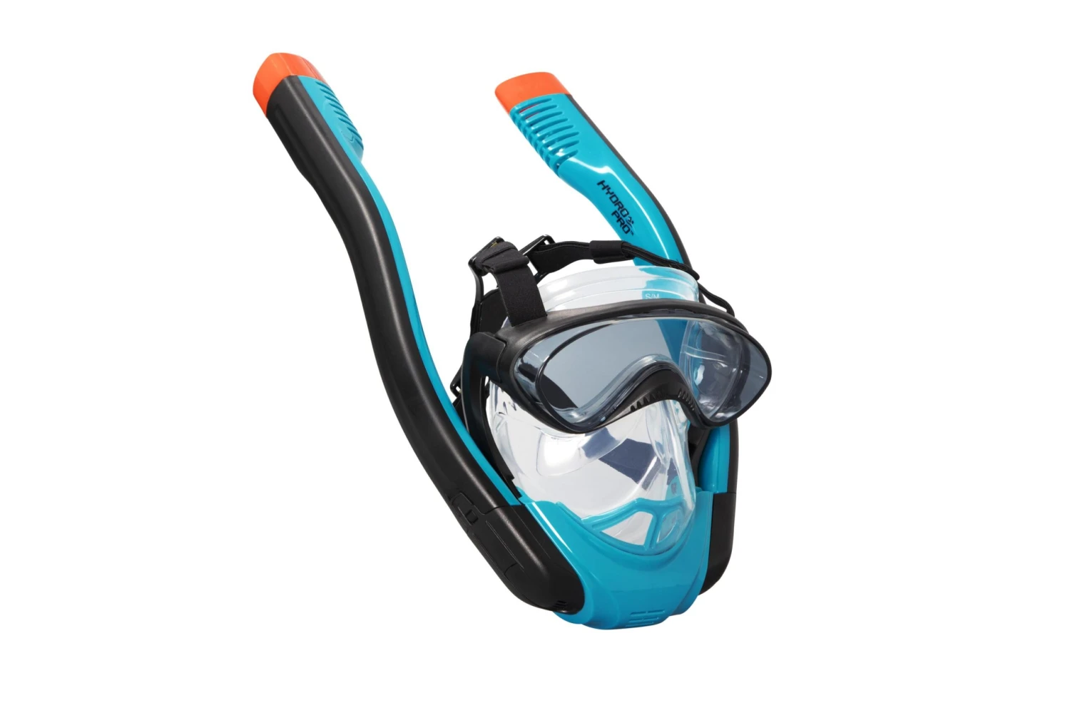 Een perfect passend (L/XL) snorkelmaster met dual air flow technologie, wat inhoudt dat je makkelijk inademt door één buis en uitademt door de andere. De dry top technologie zorgt er daarnaast nog voor dat het masker waterdicht is.