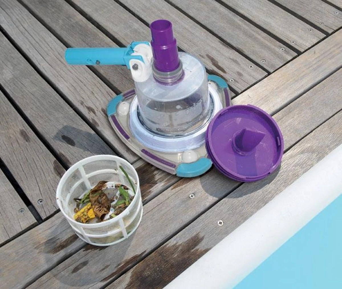 Het mandje aan de voorkant van de Kokido V trap vangt het meeste vuil op. Hierdoor hoeft het filtersysteem van het zwembad minder vaak gereinigd te worden, dit geldt tevens voor filtersystemen met cartridges.