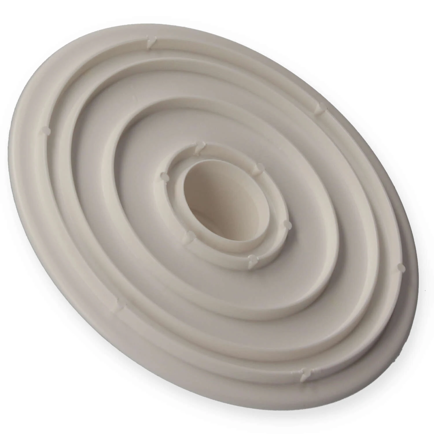 De stofzuigplaat past in de skimmer. Door de plaat in de skimmer te plaatsen kan er een stofzuiger op de tule (aansluiting) geplaatst worden. Hiermee kan er een vacuüm gecreëerd worden. Met dit vacuüm krijgt de stofzuiger zijn zuigkracht en kan deze functioneren.