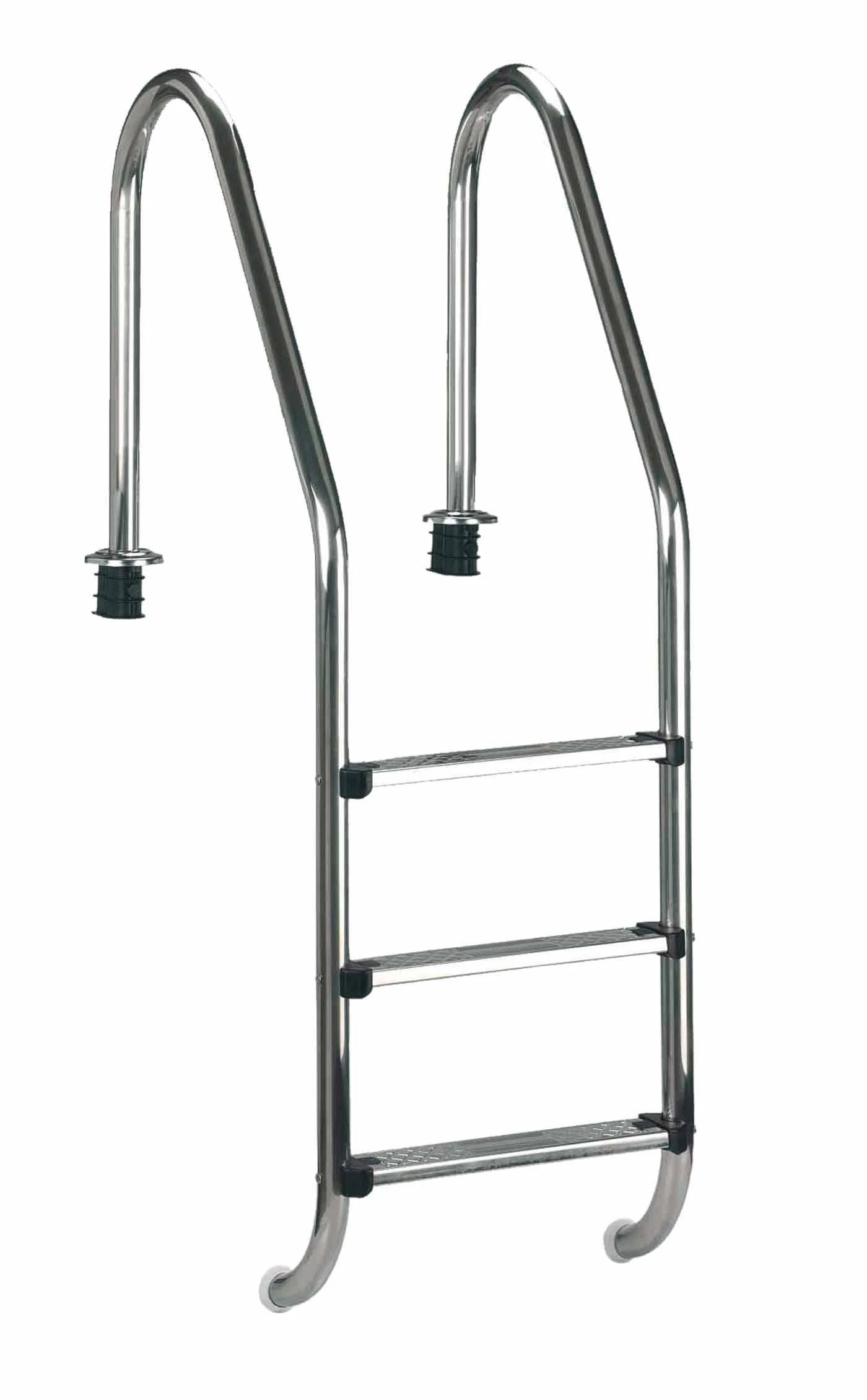 Absoluut hoogwaardige zwembadladder van roestvrij staal, compleet met antislip roestvrijstalen treden en geleiderhulzen. Deze ladder is ideaal om een inbouwzwembad te betreden. De vlakke en slipvaste treden bieden maximaal comfort bij het in- en uitstappen. Dankzij de brede stijlen die naar buiten zijn gebogen, is in- en uitstappen zonder veel moeite mogelijk, en zelfs zwembaden met brede randen of zwembadopstanden vormen geen belemmering.